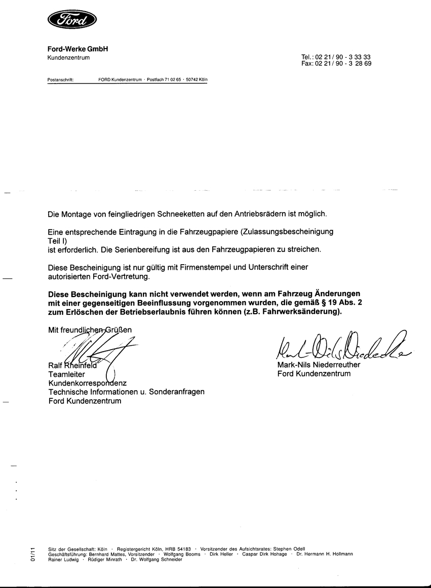 (Wo stehen die denn?? Habe noch nix gefunden). Dann shcick ich Ford 'ne Mail und bin mal gespannt was dabei rauskommt.