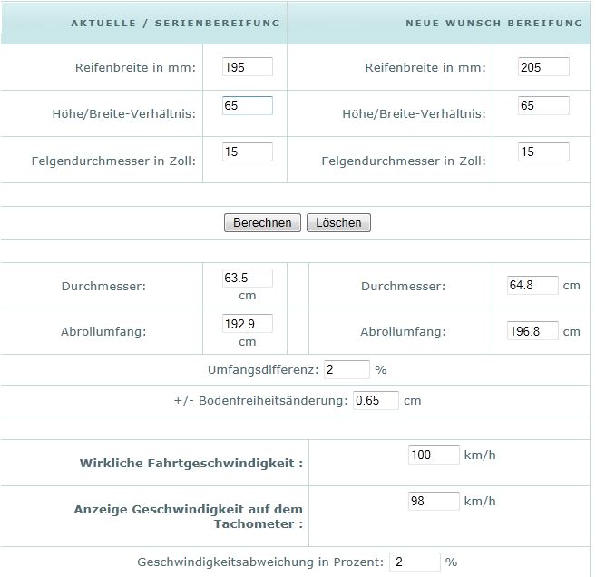 Damit ist der Wagen ja 6,5mm höher, der Reifendurchmesser also um 13mm größer.