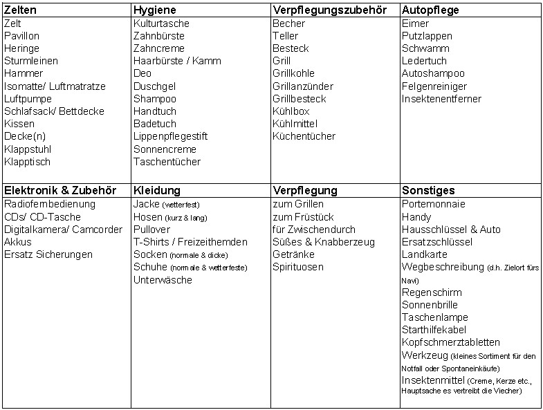 Ich hol mal die Liste wieder ausm Keller - so langsam sollte man ja schonmal anfangen mit Packen....