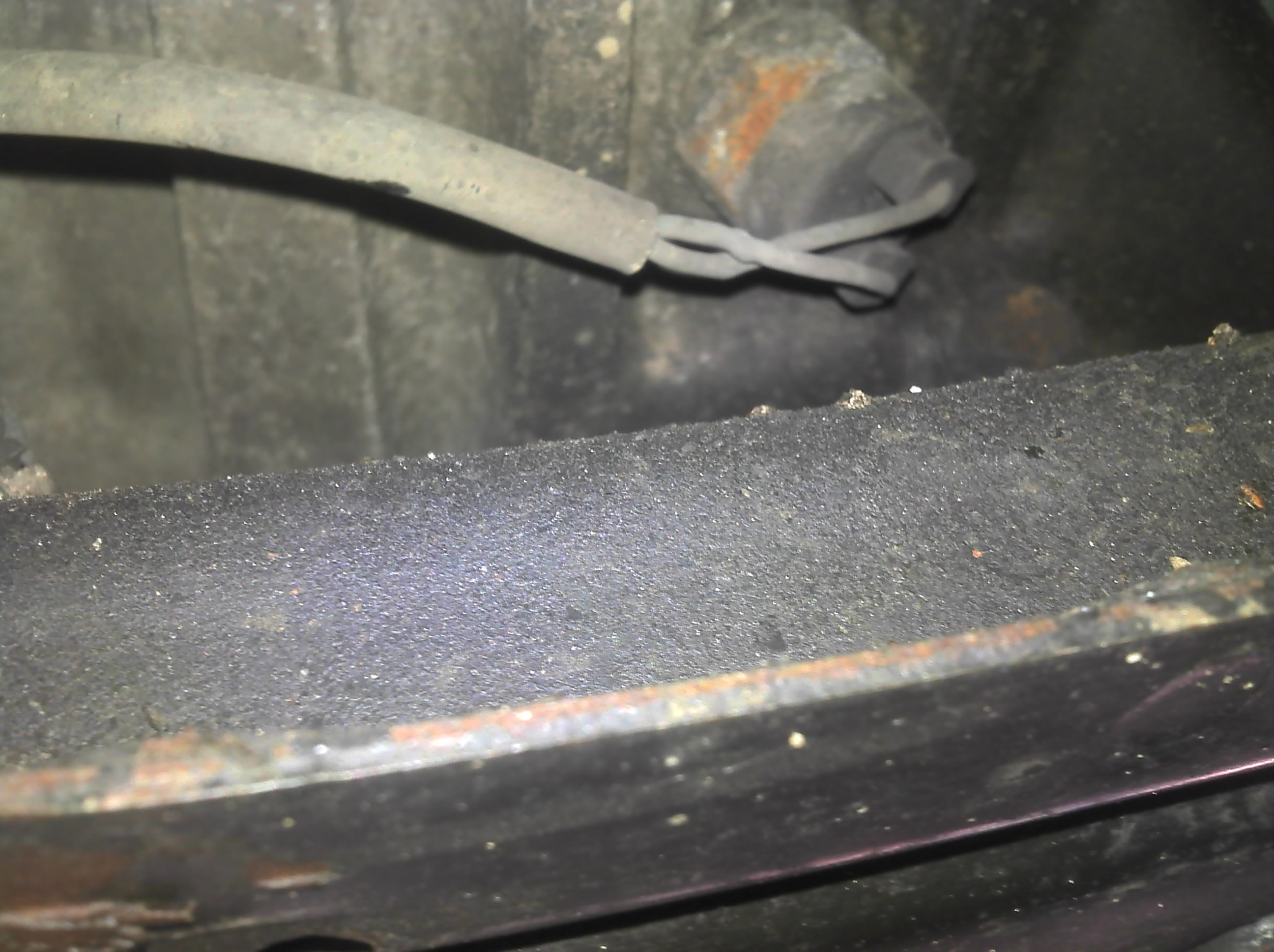 Der Andere, nicht ölige, sitzt hinter der Radhausschale der Fahrerseite.