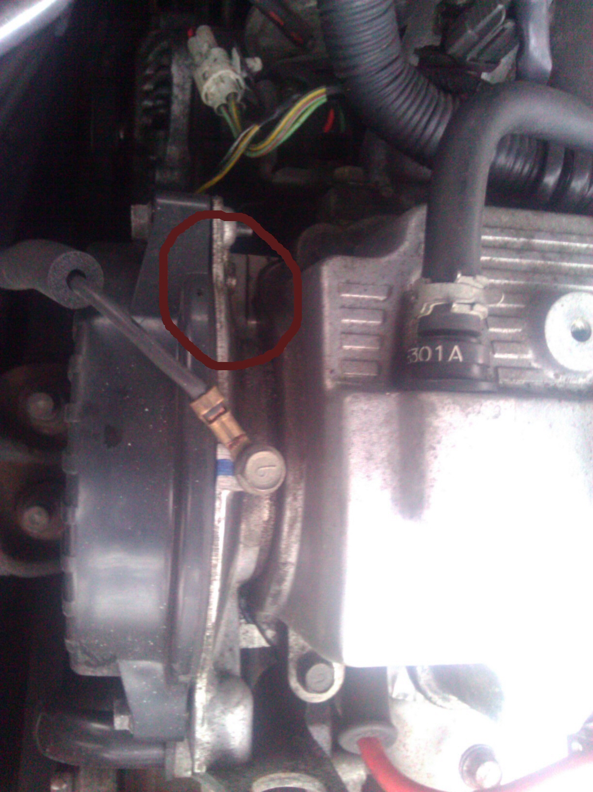 Ich weiß nicht genau wie diese Stelle heißt. Sie ist jedenfalls an der Stirnseite des Motors hinter dem Zahnriemenkasten/Verkleidung. Direkt daneben sauts raus :-(