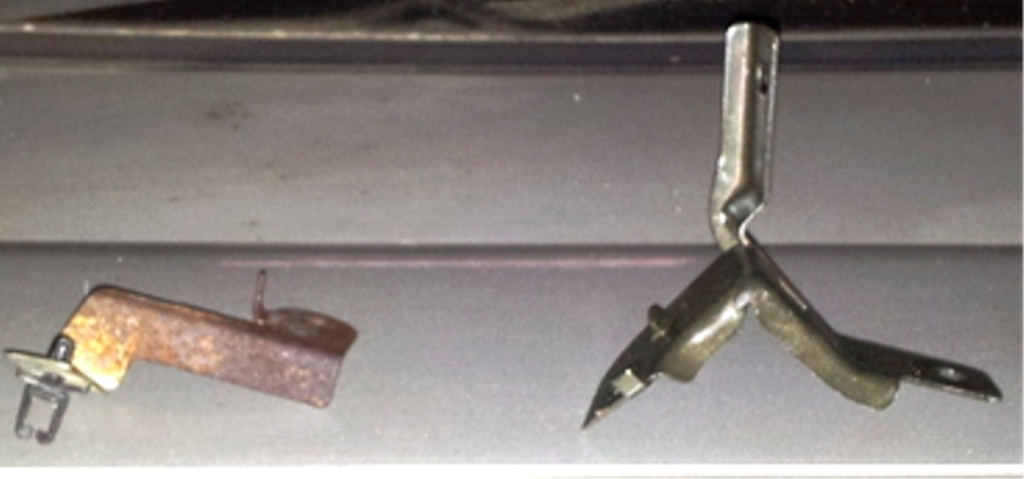 Echte Wiedererkennung kann ich hier nicht zugeben, aber anhand der "Kabeldurchführung" könnte der linke Halter auch im Bereich des Motorhaubenzugs anzusiedeln sein