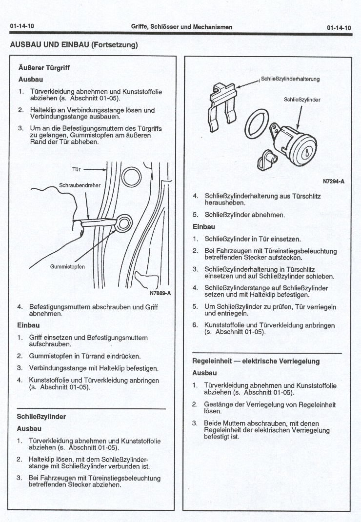 Türverkleidung ab, Zugang durch die Folie bahnen. Dann innen die Stange vom Schloß abmachen und die Federspange, die das Schloss in der Tür hält und das wars dann auch schon. Dann würd ich das Schloss erstmal mit Bremsenreiniger von Staub, Schmier und Dreck (und das ist nach knapp 20 Jahren ein Haufen!!) befreien und dann mit nem Graphit-haltigem Öl einjauchen. Graphit ist auch gleichzeitig gut gegens einfrieren im Winter, da es das Wasser verdrängt!