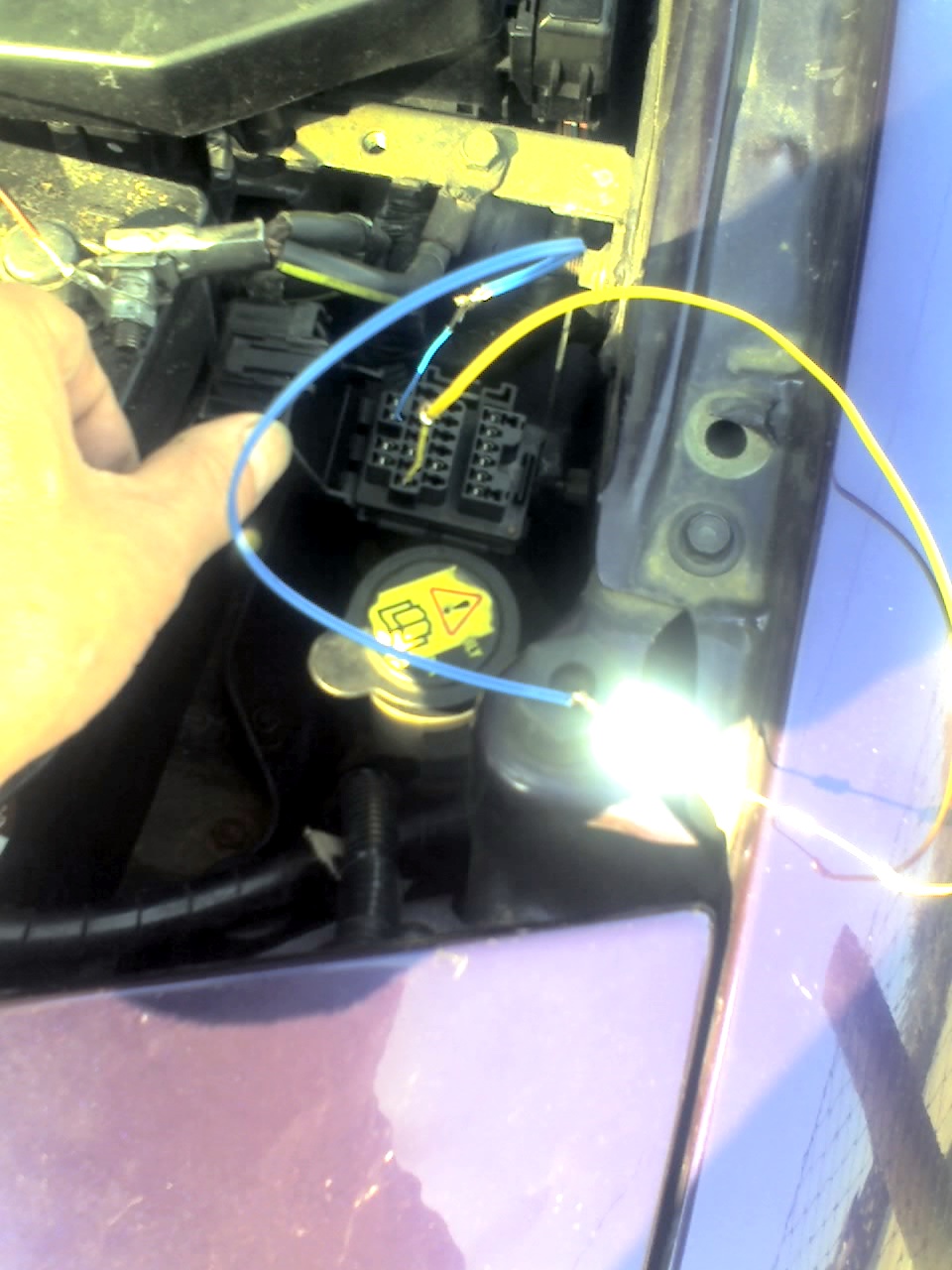 Als nächstes nehme ich eine LED mit einem 12v wiederstand und Brücke die B+ und FEN.