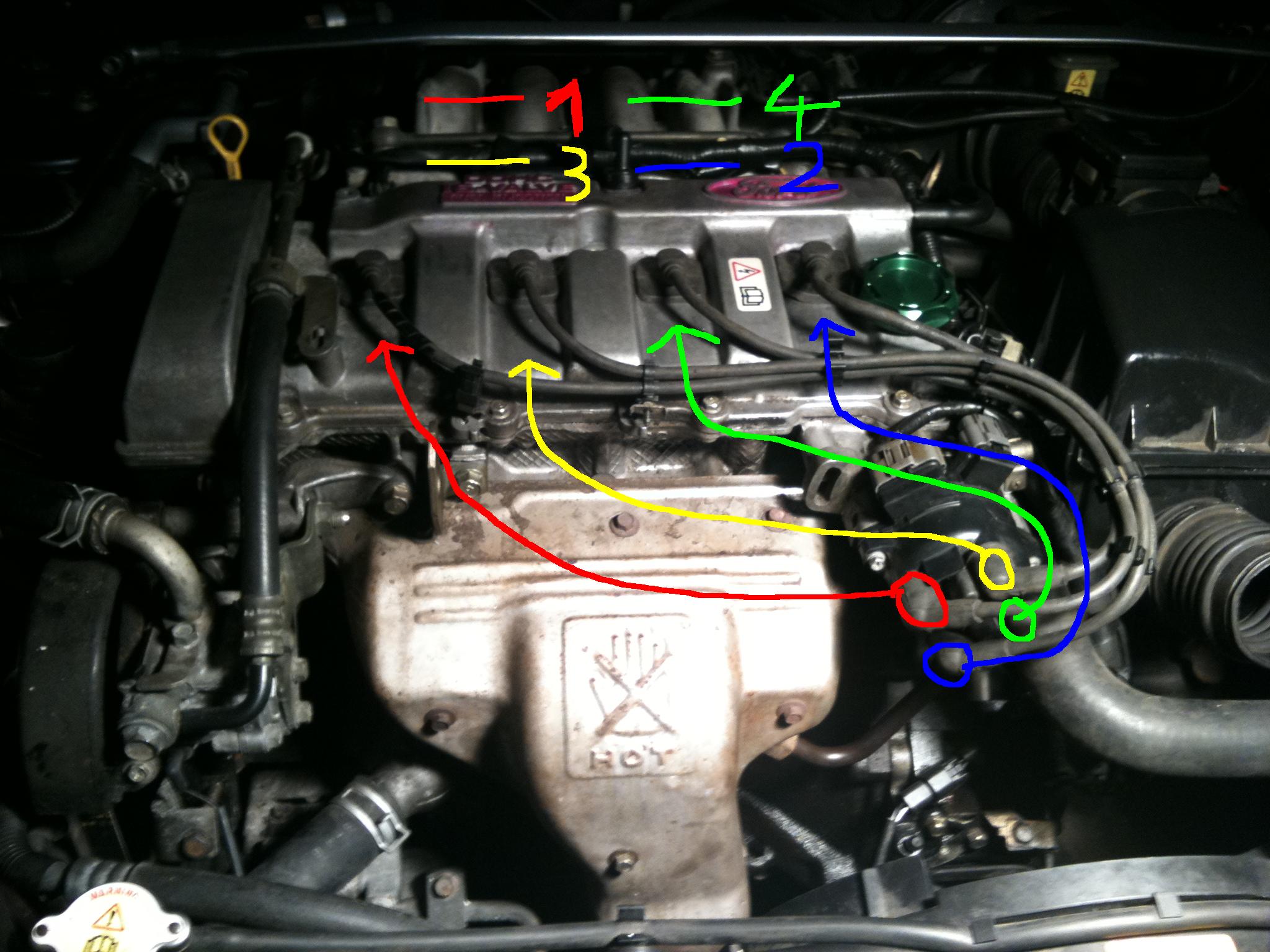 Zylinder von links nach rechts gezählt und Reihenfolge aufm Verteiler im Uhrzeigersinn 1-3-4-2