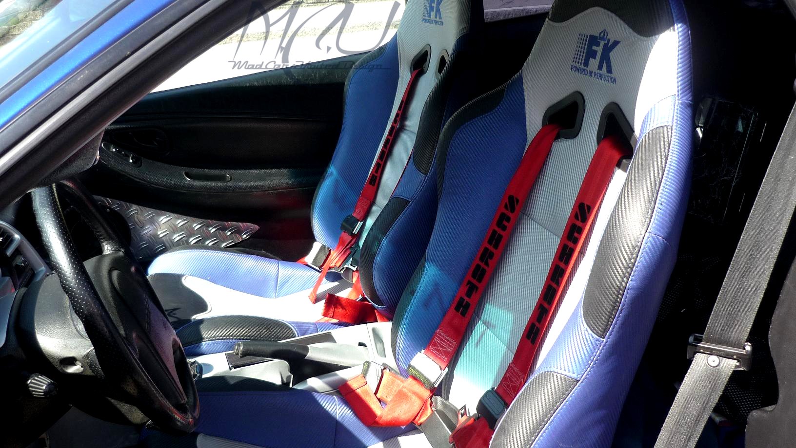 Blau Silberne Sportsitze der Firma FK, Model Spacelook Carbon mit