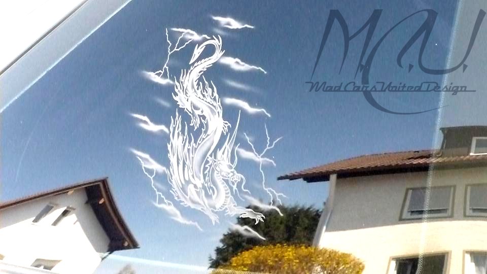 Seitenscheiben hinten Gravuren "Dragon"(350€),