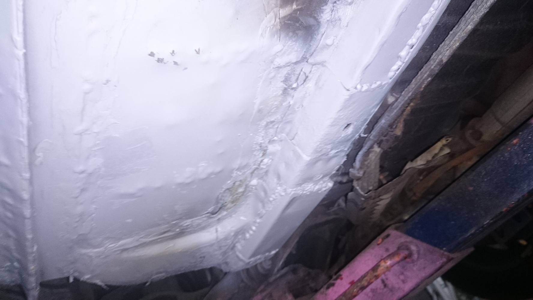 Nochmal ein paar Worte zu den Schweller auf der linken Seite, habe ganz vergessen zu erwähnen das sie schonmal "repariert worden waren". Und zwar mir 12 Schrauben und einem Blech