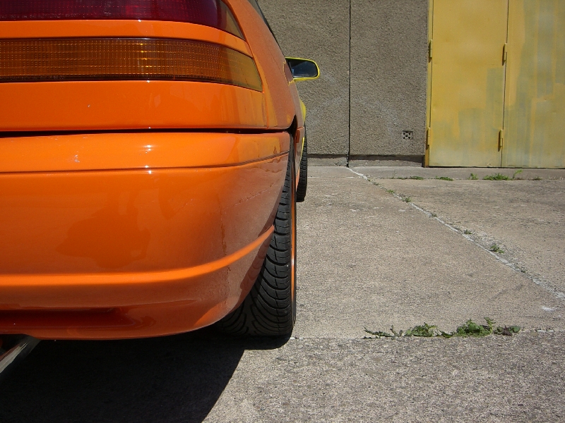 Der Übergang ist ganz sachte eingenebelt so ca. 5-9 cm breit, sieht man auf den Foto schlecht. Ich hatte nur den orginal Spoiler drauf, den hab ich vor 3 Jahren runtergemacht, das einzoige was da eventuel draufkommt ist ein Wolf Flügel, aber die Preise liegen jenseits von gut und Böse. Die nächsten 6 Monate bin ich pleite also wird der Hintern nackich bleiben beim Sunrise. Es sei denn ein Sponsor gibt mir einen