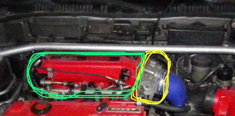 Oberer Teil Ansaugbrügge Grün umrandet, Drosseldingens Gelb: Wird späteren Suchenden helfen wenn das Problem genau eingegrenzt wird!