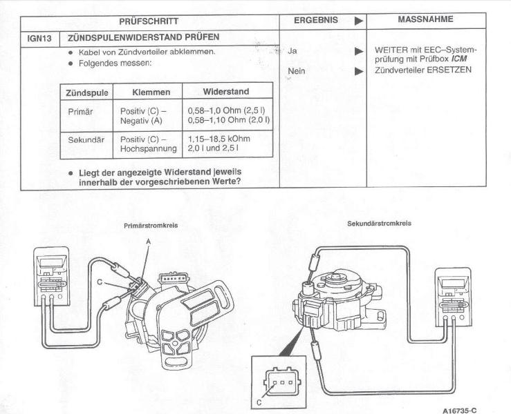 Sekundärstromkreis (kleiner Stecker zu Ausgang zum Verteilerdeckel) Öffnung Zündspule sollte zwischen 1,15 - 18,5 Kohm sein.. sind bei beiden zwischen 14,6 - 14,86 bzw. zwischen 14,97 - 15,04 also eigentlich auch in Ordnung..