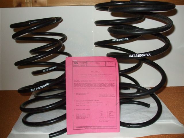 hi breucht eure hilfe geht um die gleichen Federn nur sind meine wirklich schwarz und auf der einen Ferder stht halt ( SAT P 8002 ) mein problem ist das diese nicht in meinem Fahrzeugschein eingetragen sind und ich jetzt die ABE Brauche damit der Tüv diese einträgt und zuläst bitte um schnelle hilfe danke ann allen im Voraus