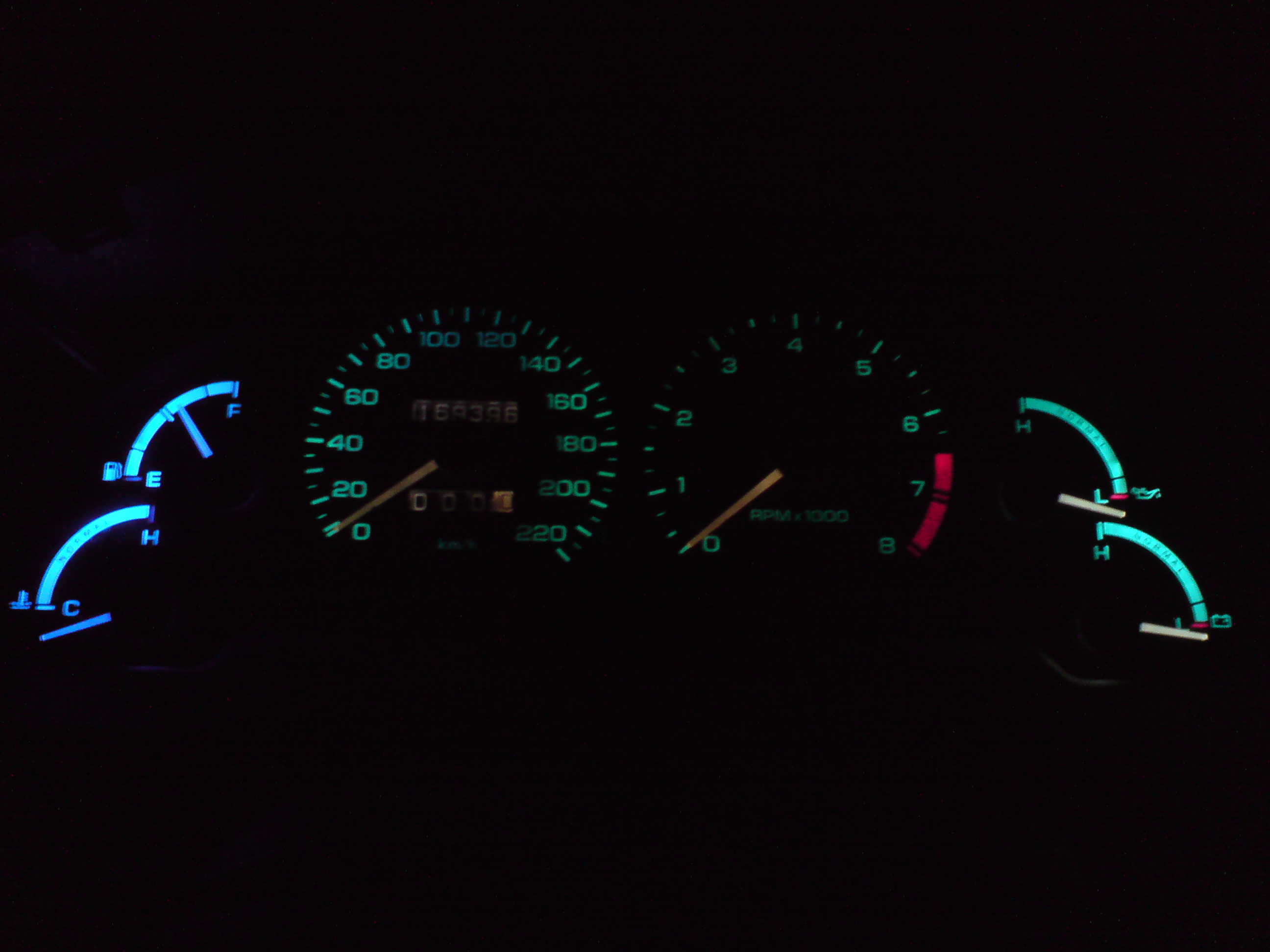 Das Türkis bei den weißen LEDs liegt an der Farbfolie im Tacho. Wer also nen weißen Tacho will, muss die runter kratzen, leider. Wenigsten stört bei den Zeigern nichts.