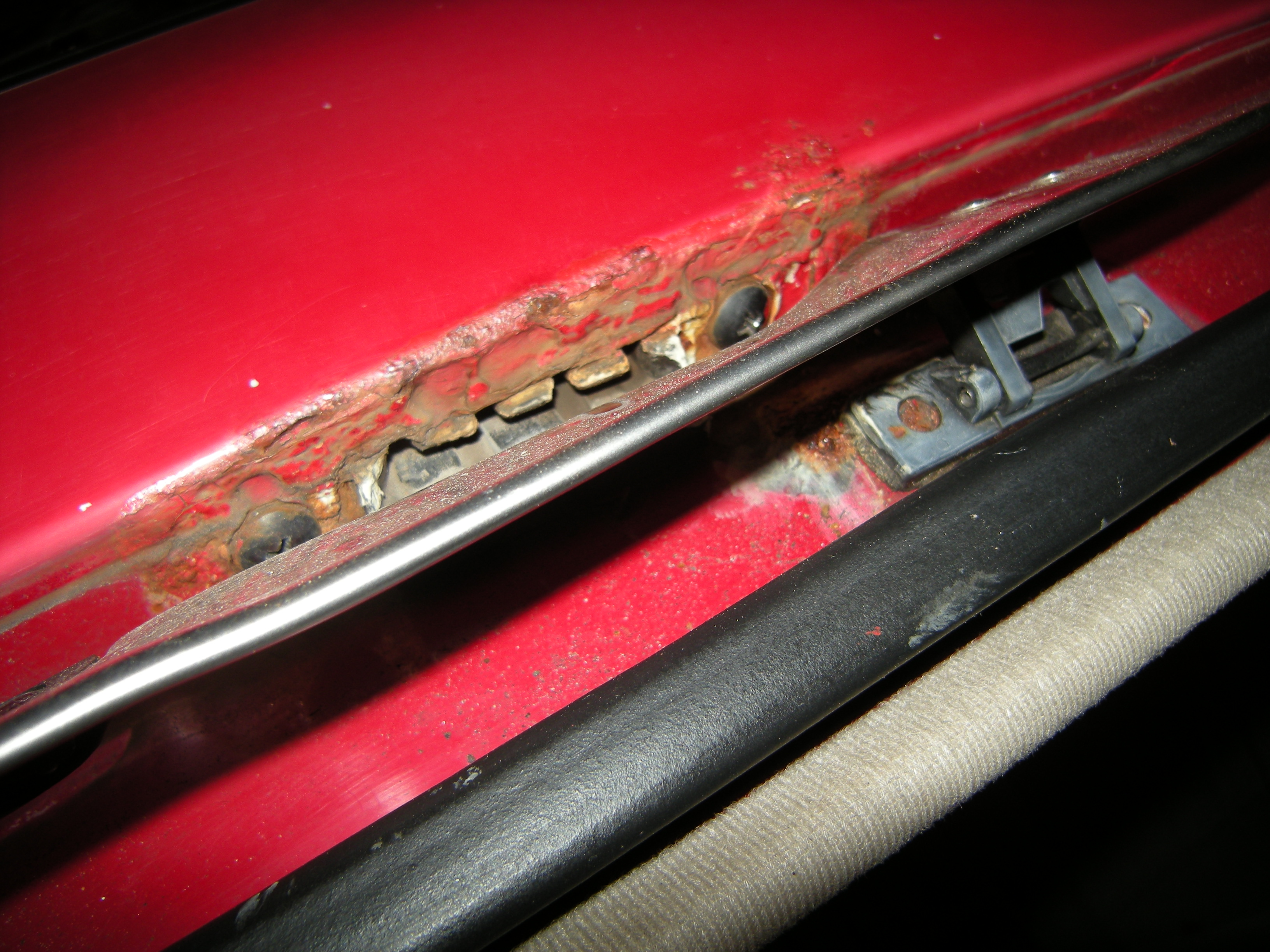 So ich habe jetzt mal Bilder von dem Rostschaden um den es sich handelt. Da ich den Dachhimmel noch nicht entfernt habe sind es nur Aussenbilder. Wie es von innen ausschaut wissen nur die Götter.